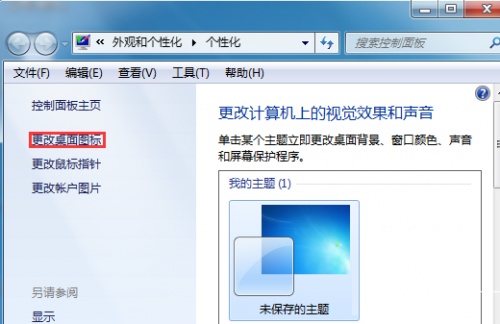 2、打开个性化后,点击左侧的“更改桌面图标”选项;
