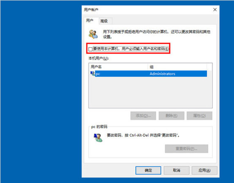 4、将用户帐户对话框里的“要使用本计算机,用户必须输入用户名和密码”前面的勾勾去掉,然后点击应用,如下图所示。