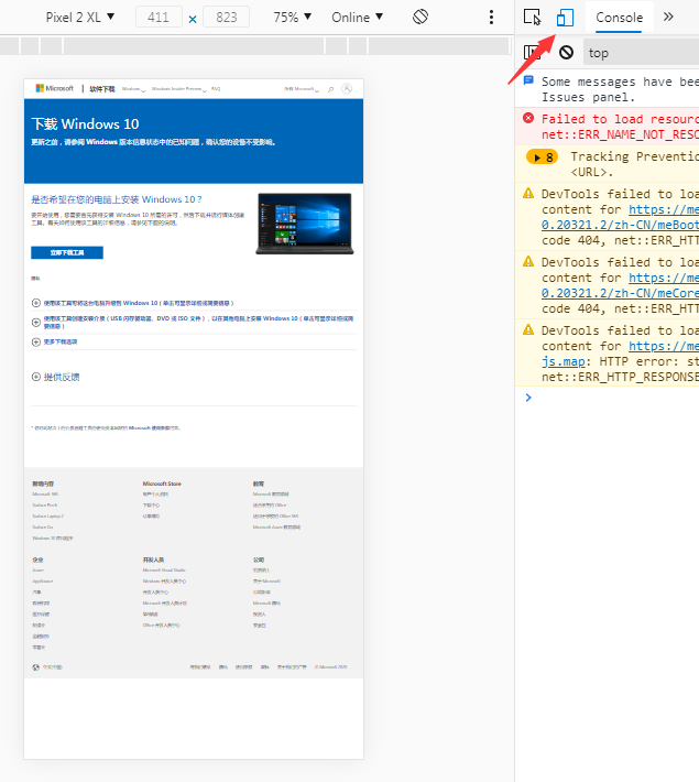 2、在这个页面中直接按键盘上的 F12 打开浏览器中的开发者调试工具选项,并且点击上面的移动手机图标。