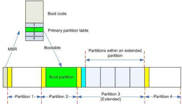 传统的分区方案(称为MBR分区方案)是将分区信息保存到磁盘的第一个扇区(MBR扇区)中的64个字节中,每个分区项占用16个字节,这16个字节中存有活动状态标志、文件系统标识、起止柱面号、磁头号、扇区号、隐含扇区数目(4个字节)、分区总扇区数目(4个字节)等内容。由于MBR扇区只有64个字节用于分区表,所以只能记录4个分区的信息。这就是硬盘主分区数目不能超过4个的原因。后来为了支持更多的分区,引入了扩展分区及逻辑分区的概念。但每个分区项仍用16个字节存储。主分区数目不能超过4个的限制,很多时候,4个主分区并不能满足需要。另外最关键的是MBR分区方案无法支持超过2TB容量的磁盘。因为这一方案用4个字节存储分区的总扇区数,最大能表示2的32次方的扇区个数,按每扇区512字节计算,每个分区最大不能超过2TB。磁盘容量超过2TB以后,分区的起始位置也就无法表示了。在硬盘容量突飞猛进的时代,2TB的限制早已被突破。由此可见,MBR分区方案已经无法再满足需要了