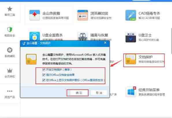 7、打开“百宝箱”,找到文档保护,打开文档保护,如图所示: