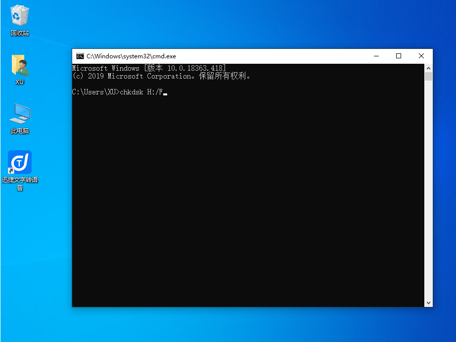 4. chkdsk H:/ F,(H:是您的SD卡驱动器号,/ F是修复参数。)修复SD卡后,检查TF卡的属性,然后可以显示容量,指示修复成功。