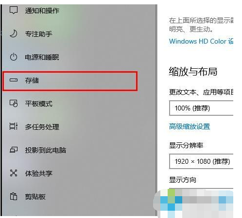 3、在系统页面中点击储存选项。