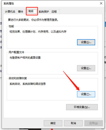 3、在高级设置中选择设置故障和启动恢复;