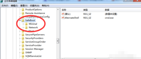 5、然后依次展开文件夹【HKEY_LOCAL_MACHINESYSTEMCurrentControlSetControlSafeBoot】。