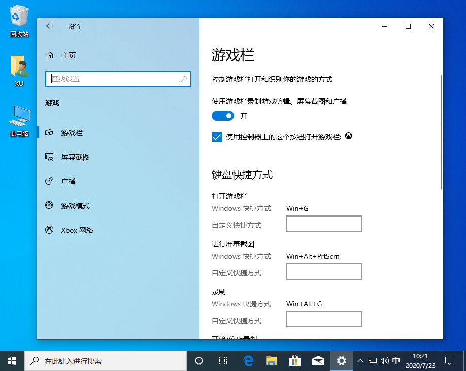 2、在游戏栏中找到使用游戏栏录制游戏剪辑、屏幕截图和广播选项并开启。一般出现win10自带录屏失效怎么办的时候多是由于该选项被关闭导致的。