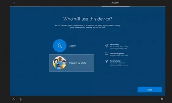 4.在本次版本更新中,微软希望帮助客户设置其设备,以供家庭中的多个人使用。