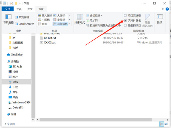 先在我们可以看到两个文本文件的后缀都显示出来了,而且之前修改的“.bat”后缀文本此时还是“.txt”文件。