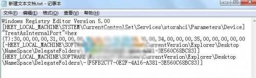 Windows Registry Editor Version 5.00 [HKEY_LOCAL_MACHINESYSTEMCurrentControlSetServicesstorahciParametersDevice] "TreatAsInternalPort"=hex(7):30,00,00,00,31,00,00,00,32,00,00,00,33,00,00,00,34,00,00,00,35,00,00,00,00,00 [-HKEY_LOCAL_MACHINESOFTWAREMicrosoftWindowsCurrentVersionExplorerDesktopNameSpaceDelegateFolders{F5FB2C77-0E2F-4A16-A381-3E560C68BC83}] [HKEY_LOCAL_MACHINESOFTWAREMicrosoftWindowsCurrentVersionExplorerDesktopNameSpaceDelegateFolders-{F5FB2C77-0E2F-4A16-A381-3E560C68BC83}]