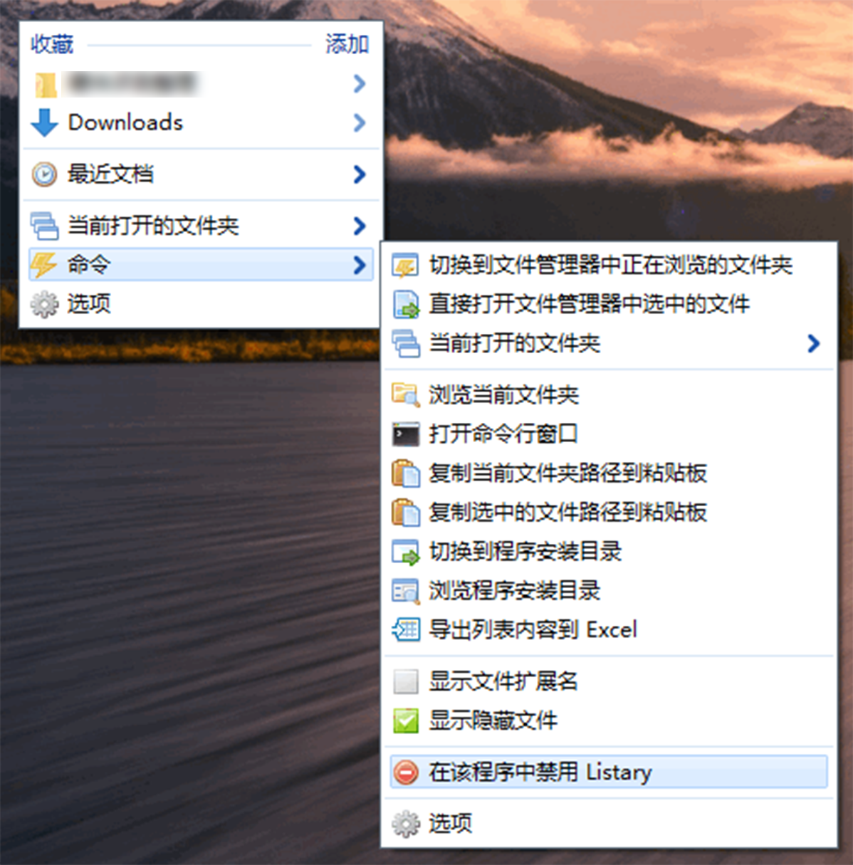 此外,在桌面和文件夹的快捷菜单中,也可快捷设置禁用Listary。