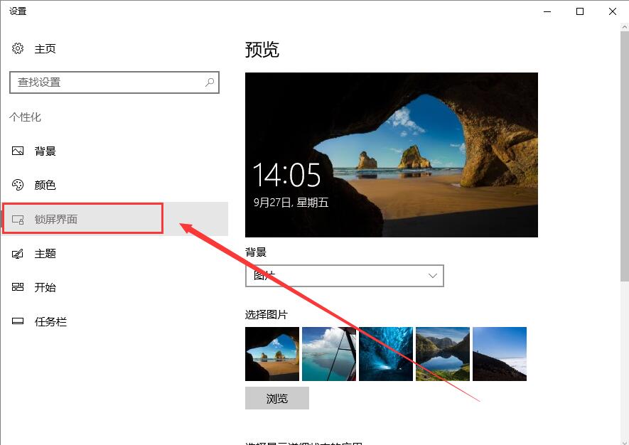 4、在【锁屏界面】中,能够选择电脑锁屏时的背景图片,还能够设置待机时间等。