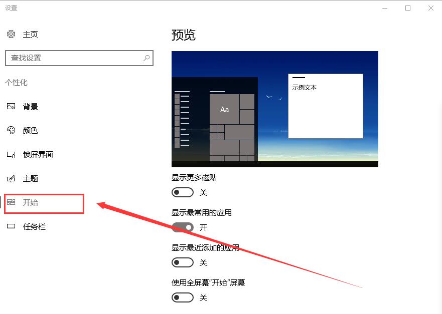 6、在【开始】界面中,能够设置菜单的显示状态。