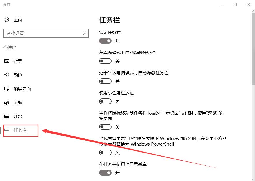 7、在【任务栏】中,能够设置电脑下方任务栏的显示状态。