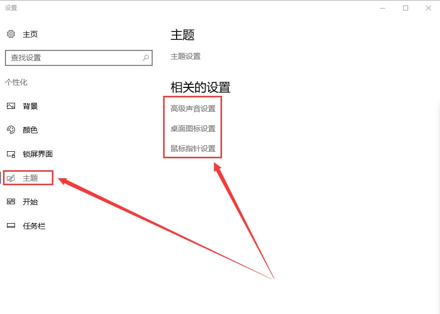 5、在【主题设置】中,能够设置桌面图标,声音方案和鼠标指针的显示设置等。