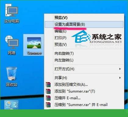 直接右键选中图片,选择“设定为桌面背景”,够简单了吧!