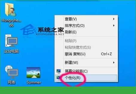 当然,方法不止一个。右键桌面空白地方,选择“个性化”。