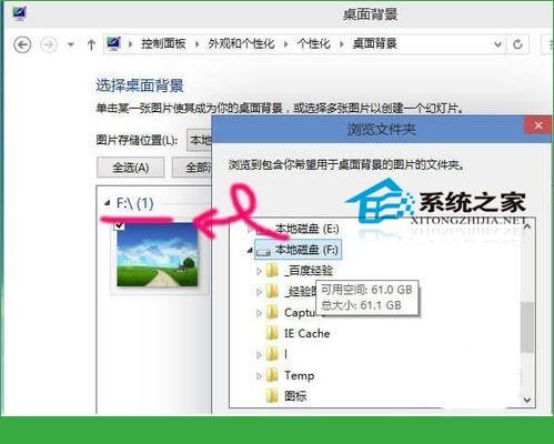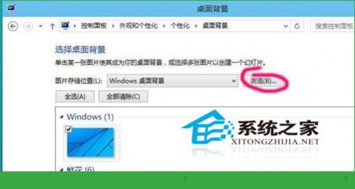 然后从下面的列表中选择要作为背景的图片。这种方法唯一的好处,可以选择图片的放置方式,比如填充,居中,拉伸,而直接右键设定的背景为拉伸方式。