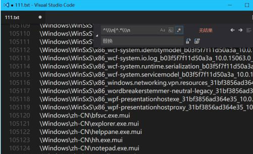 3、最后利用“Visual Studio Code”软件将目录全部替换掉,然后剩下的就是我们想要的答案,需要减掉空行。