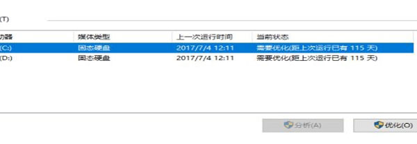 5、进入优化界面之后使用鼠标选中需要优化的磁盘,然后点击右侧的优化按钮进行优化即可!完成之后电脑中的资源管理器打开速度一定会加快的。