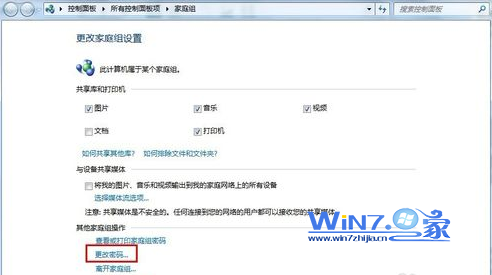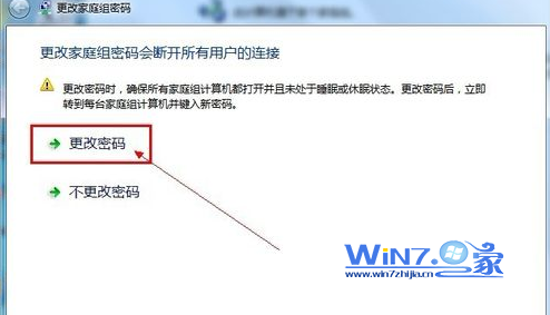 3、接着在弹出来的更改家庭组密码界面中,点击“更改密码”项;