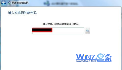 4、在文本框中输入自己想要设置的家庭组密码,然后点击击“下一步”按钮;