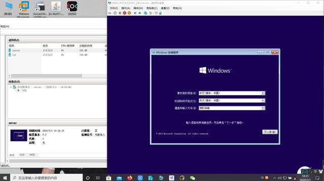 启动后可以看到,虚拟机已经开机起来了,它和我们物理上的操作系统是一模一样的,功能也非常的齐全,接下来我们就是等待它开机的过程然后和普通的安装系统一样去安装它就可以使用啦!而且我们还可以在右则的Hyper-V去查看它的使用情况哦,而且一台普通的电脑可以创造好几台台虚拟机呢!