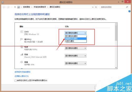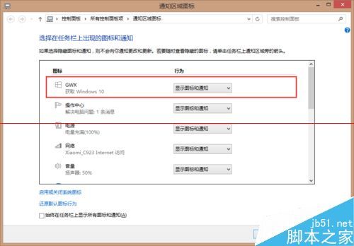4、然后找到“GWX”,单击后后面的下拉选择框