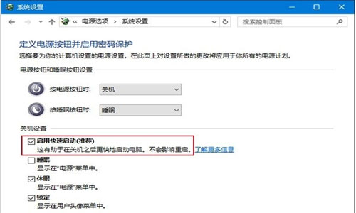 3.可以在“控制面板”——“电源选项”——“系统设置”中将“启用快速启动”选项前面的勾去掉即可。