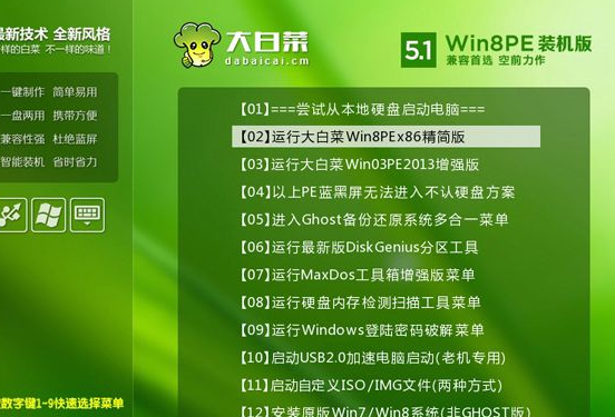 3、从U盘启动进入到这个菜单,通过方向键选择【02】选项回车,启动pe系统,无法进入则选择【03】旧版PE系统;
