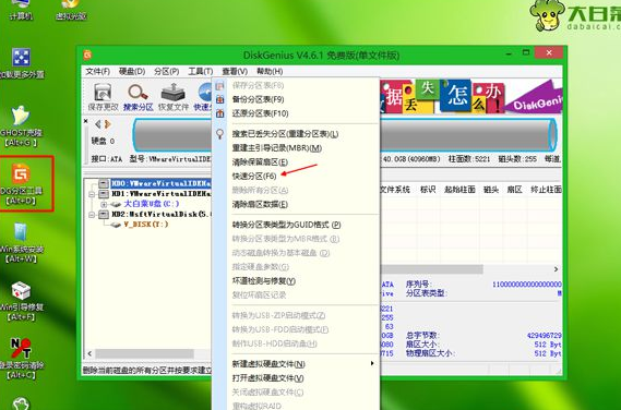 4、进入到pe系统,然后双击打开【DG分区工具】,右键点击硬盘,选择【快速分区】;