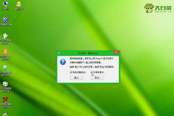 8、弹出这个提示框,勾选“完成后重启”和“引导修复”,点击是开始执行win7系统安装过程;