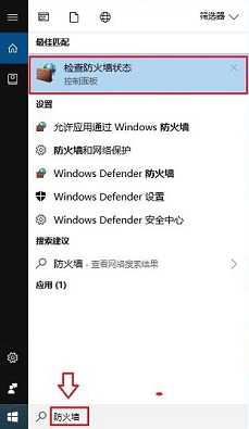 三、是借助Win10搜索功能,快速找到防火墙设置入口。