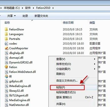 进入飞信的安装文件文件夹,将 dwmapi.dll 文件粘贴过来覆盖原文件。