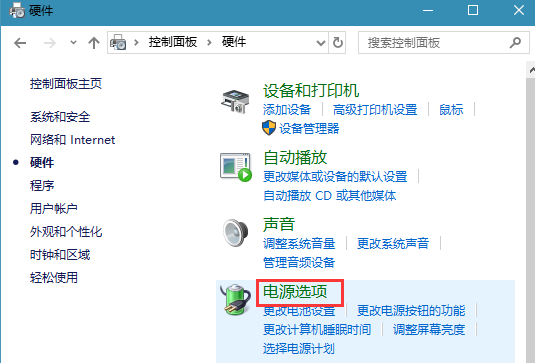 2、点开【硬件】后在选择【电源选项】将其打开。