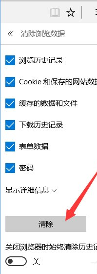 3、选中要删除的历史浏览记录,然后点击“清除”按钮,如果想要彻底删除所有的记录,可以把所有选项都勾上。