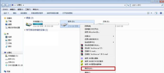 1、进入桌面打开【计算机】,选择需要格式化的磁盘右击选择【格式化】