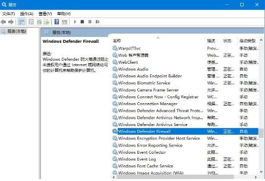 2、在服务面板右侧往下拉,找到Windows Defender Firewall服务,并双击左键打开。有些用户的系统是Windows Firewall。