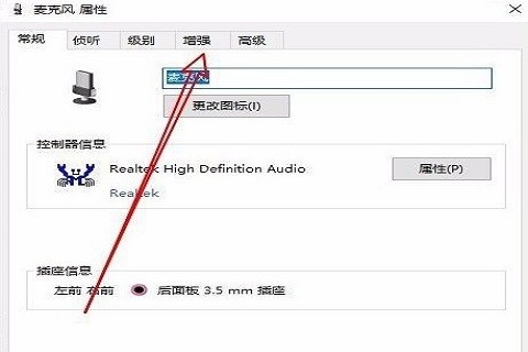 5、然后在麦克风属性对话框中,我们找到对话框顶部的“增强”选项卡,并单击该选项卡进行下一步;