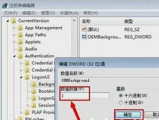 4、命名为“OEMBackground”,数值设置为1,并“确定”