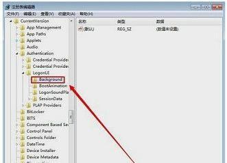 2、找到图示“background”,或者直接将路径复制到下方“HKEY_LOCAL_MACHINESOFTWAREMicrosoftWindowsCurrentVersion AuthenticationLogonUIBackground”