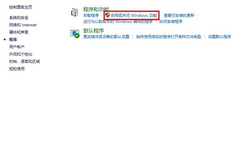 2、在程序界面中点击【程序和功能】下方的【启用或关闭windows功能】