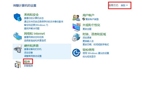 1、先打开【控制面板】,接着将【查看方式】设置成【类别】,再点击【程序】