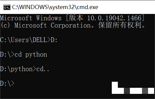 4、输入cd.。按回车键,可以返回到上一级D盘;