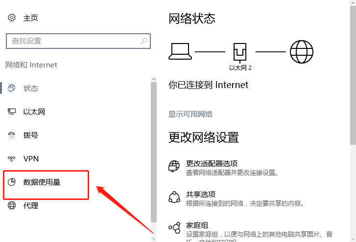 2、接着在打开的界面中选择左侧的【数据使用量】选项卡