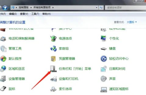 2、点击控制面板设置页面的任务栏和开始菜单属性。