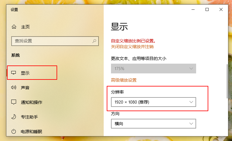 3、另外还能在windows设置的【显示】界面中修改分辨率来改版图标大小