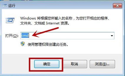 1、先进入桌面,接着按照【windows+R】键,打开运行框,输入【cmd】,点击【确定】