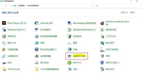 1、打开电脑,在控制面板中找到设备和打印机。
