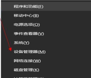 1、Windows+X(右键开始菜单),找到设备管理器,点进去