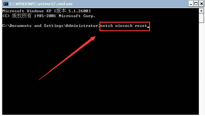 2、在弹出的命令符窗口中输入"netsh winsock reset",按下回车键。